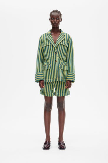 Introducing the Bina Jacket, the perfect hybrid between a structured blazer and a casual denim jacket. With a notched lapel and four flap pockets, this piece offers sophistication and utility. Buttoned wrists add a polished touch, making it versatile for any occasion.
