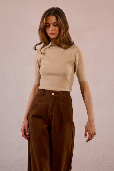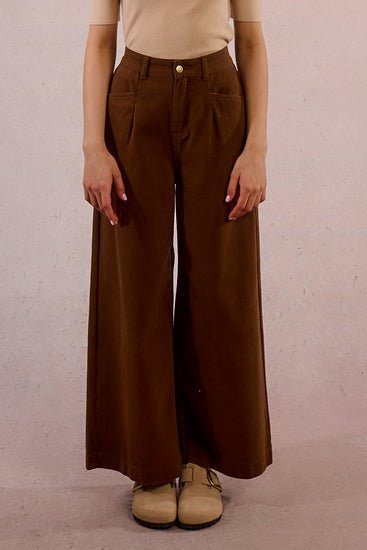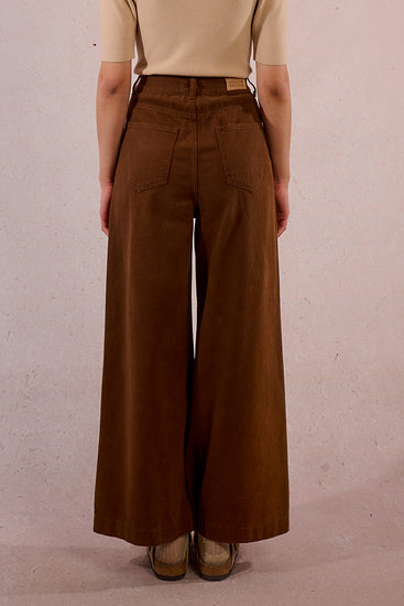 A polished take on denim, these brown wide-leg trouser jeans give you the structure of a tailored pant with the ease of everyday jeans. Designed with a high-rise waist, soft 100% cotton fabrication, and wide front pleats, this silhouette creates a long, clean line that feels modern, effortless, and endlessly wearable. A rich brown wash adds a refined touch—perfect for dressing up or down.