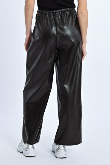 Street-style attitude meets refined texture. These black faux leather baggy pants from Molly Bracken feature a relaxed wide-leg silhouette, a high elasticated waist with tie detail, and side pockets—making them both comfortable and statement-making.