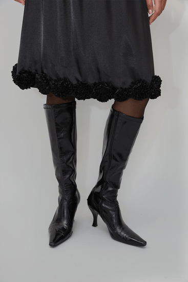 The Hana Skirt by OpéraSPORT is a refined midi with subtle statement details. Cut in a clean, straight silhouette from recycled polyester, this black skirt is finished with delicate floral appliqués at the waist and hem—softening the look while keeping it modern.