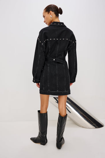 The Ladera Dress takes the timeless trucker silhouette and flips it on its head—literally. Crafted from premium denim with just enough stretch for comfort, this elevated piece features dramatically oversized drop shoulders and billowing balloon sleeves that command attention.