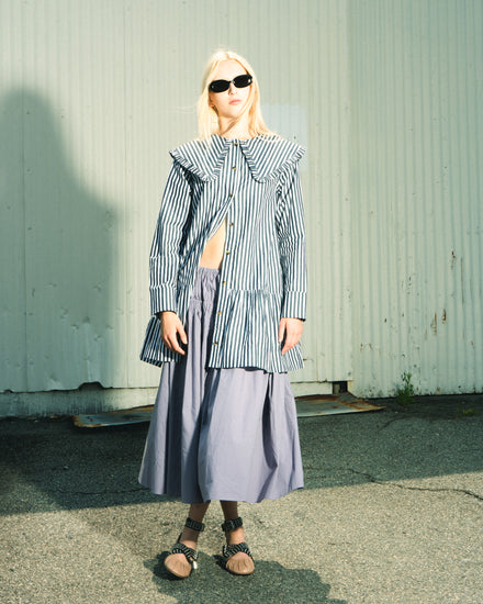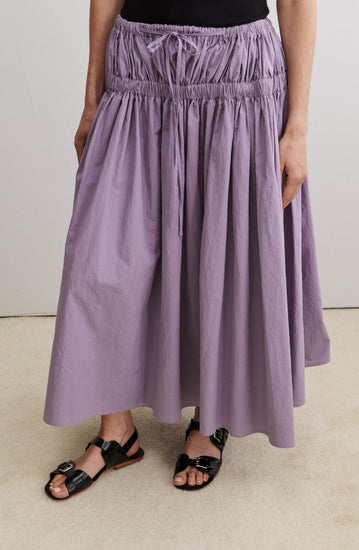 This high-waisted wonder brings the fun with its bouncy A-line shape and comfy elasticized hip band. Cinch the drawstring for your perfect fit and enjoy the crisp cotton that keeps its shape while you shape your day.