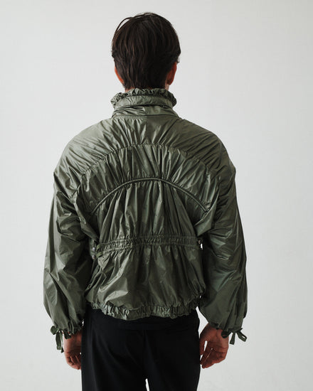 Meet the MARIANNE JACKET. Crafted from technical nylon with a ruched back and adjustable drawstrings, snaps, and ties, this jacket bends to your style. A structured high neck pairs with soft cotton lining for comfort that doesn't compromise. Part windbreaker, part statement piece.