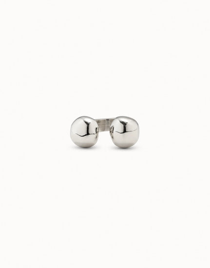 Introducing a playful twist on everyday elegance—this sterling silver-plated ring features an open center design adorned with two charming balls that catch the light with every gesture. Handcrafted by the artisans of UNOde50 in Spain, each piece celebrates the brand's commitment to unique, wearable art. The open silhouette offers a modern edge while maintaining timeless sophistication. Available in multiple sizes to find your perfect fit. A conversation starter that proves great design doesn't take itself too seriously.
