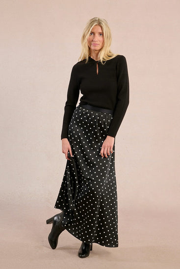 Classic with a modern twist, this long polka dot skirt from Molly Bracken adds effortless polish to any look. Crafted from smooth satin-like polyester, it features an elasticated high waist, straight fit, and elegant drape that moves beautifully with every step.