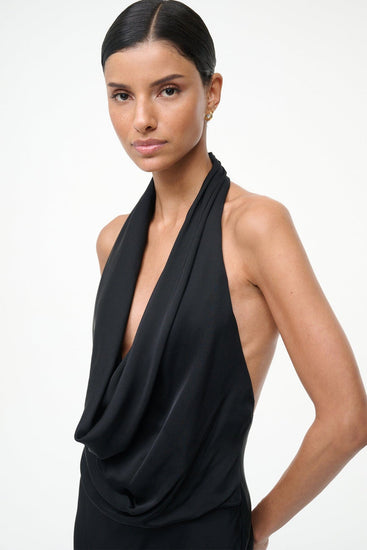 Turn heads in the Poppi Silk Dress, a show-stopping halter maxi that combines elegance with edge. The softly sculpted cowl neckline drapes beautifully while the daring backless silhouette delivers serious wow-factor. Perfect for those moments when you want to make a statement.