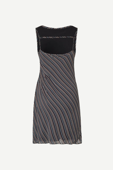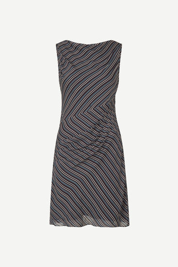 Effortless and refined, this striped mini dress from Samsoe Samsoe features a bias-cut skirt, pleated side detailing, and a subtle slit at the hem that adds movement and shape. Designed with an adjustable back strap and invisible side zip, it offers a clean, tailored finish that feels both elevated and easy.