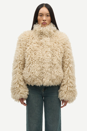 Effortlessly cool and endlessly cozy, this faux shearling jacket from Samsoe Samsoe delivers warmth with modern edge. Designed with an oversized fit, it features a hidden snap and zip closure, rib-knit cuffs, and an elasticated hem for a softly structured shape.