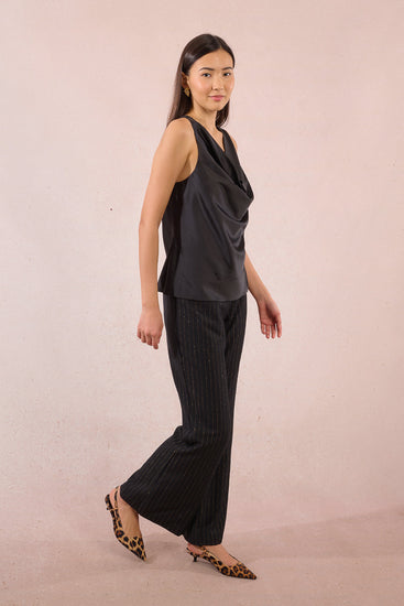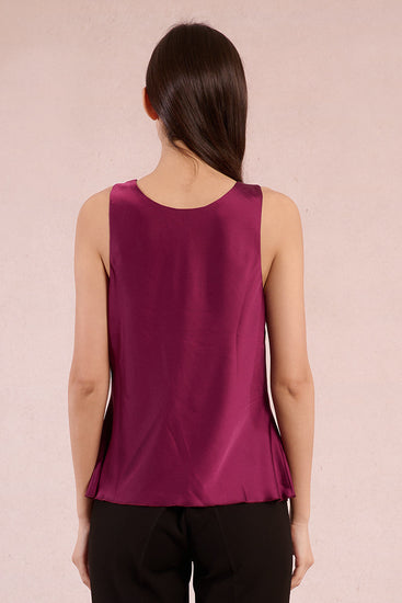 A polished wardrobe essential with a romantic drape. This satin cowl tank features a soft, fluid neckline, slim fit, and a sleek sleeveless silhouette that elevates any look. Available in classic black or a rich dark pink, it’s the perfect piece for nights out, layering, or adding a refined touch to everyday styling.