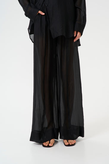 Enjoy breezy days in the TRUDI PANT—sheer wide-leg trousers with a flirtatious short lining and handy side pockets. The elastic waistband with a drawstring lets you adjust your fit just right, while the fluid drape keeps things cool and comfy. Perfect for layering up or going solo, these pants bring effortless summer vibes to any outfit!