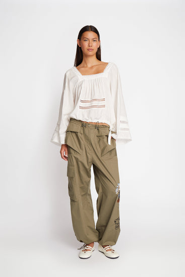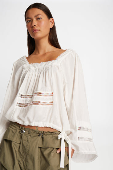 Introducing the playful Urose Blouse by Munthe! This gorgeous blouse features delicate embroidery anglaise details and a charming tie at the bottom. Complete with a square neckline and loose sleeves, this blouse adds a touch of elegance to any outfit.