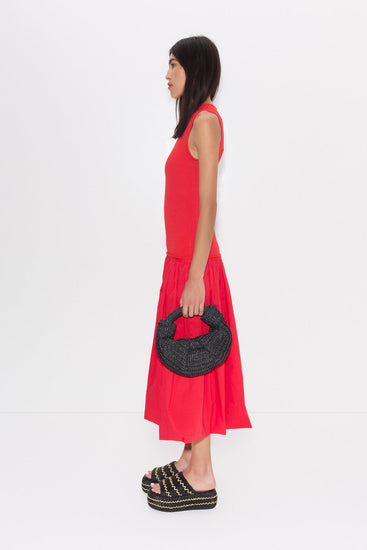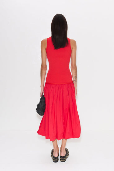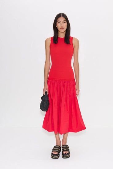 Upgrade your summer wardrobe with the Yanez Poplin Combo Dress from Simon Miller. This playful midi dress features sleeveless and a smocked bodice for a flattering fit. Perfect for any occasion, pair it with your favorite sandals and you're ready to go!